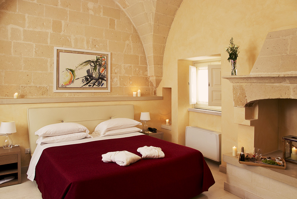 La riservatezza. Nella sua semplicità offre un soggiorno silenzioso ed appartato. Il pavimento in pietra di Trani, la raffinata volta a vista in pietra di tufo e l'affaccio su una stradina del centro storico consentono un soggiorno piacevole e tranquillo. Il bagno, con affaccio diretto sulla stradina, è rivestito in cemento con un gradevole e rilassante color tortora.