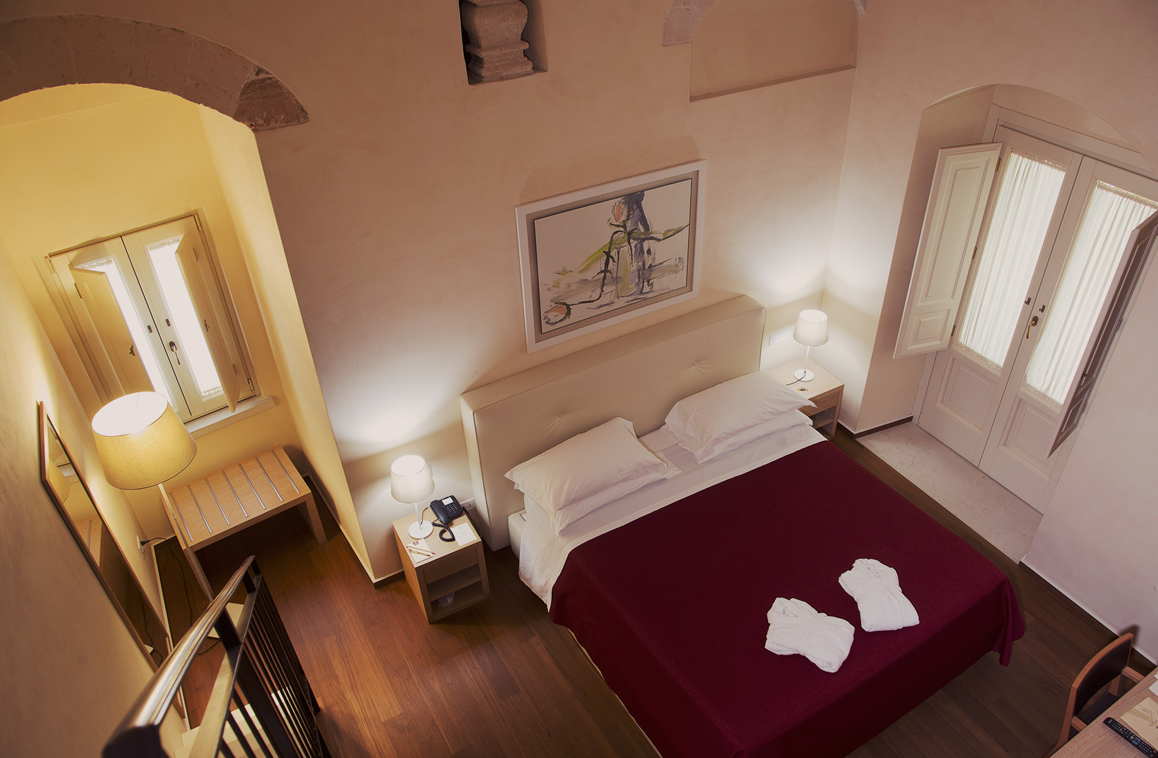 L'eleganza. Questa camera raccoglie l'essenza della semplicità e della raffinatezza. Archi e fregi la rendono unica e diversa nel suo genere. Due finestre affacciano nella corte e nell'intimo e luminoso atrio. Il bagno ha tinte calde e una comoda doccia doppia, che caratterizzano la sua unicità.